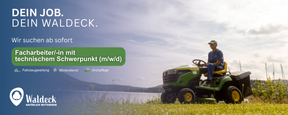 Wir sorgen als Dienstleister für 7.000 Bürger*innen und zahlreiche für in Gäste unserer schönen Nationalparkstadt. Die Nationalparkstadt Waldeck am Edersee hat dabei viel zu bieten; natürlich auch als Arbeitgeberin. Bei uns ist Abwechslung garantiert: Kein Tag gleicht dem Anderen: Du arbeitest gern praktisch, bist am liebsten unterwegs und willst am Ende des Tages sehen, was du geschafft hast? Du liebst den Geruch von frischem Hydrauliköl mehr als Sonnencreme? Perfekt - Dann bist du bei uns genau richtig. Der Bauhof der Stadt Waldeck sorgt täglich dafür, dass Straßen, Wege, Grünflächen und öffentliche Anlagen funktionieren, zuverlässig sichtbar und im Team.